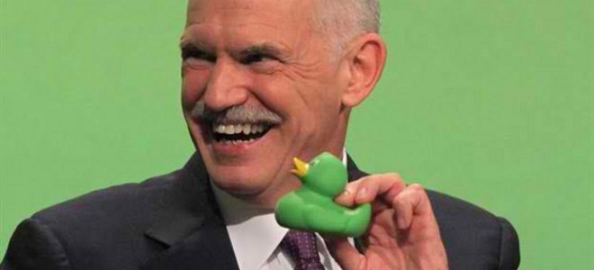 Η Ελλάδα δεν είναι φτωχή χώρα, αλλά χώρα που για πολλά χρόνια κακοδιοικούνταν. Και, όπως παραδέχεται, αυτό δεν μπόρεσε να το αλλάξει ούτε το δικό του Υπ. Συμβούλιο. Η Ελλάδα θα πρέπει να αλλάξει ριζικά, τονίζει ο Παπανδρέου. Ωστόσο, αυτό μπορεί η χώρα του να το κάνει μόνον ως μέλος της Ευρωζώνης. Οι δημοσιονομικές περικοπές συνέβαλαν σημαντικά σ' αυτό, «αλλά δεν αρκεί αυτό». Αυτό που υποστηρίζει ο Παπανδρέου είναι ότι: Δεν πρέπει να αναδομηθεί μόνον η Ελλάδα, αλλά ολόκληρη η Ευρώπη, «μέσα από μια πράσινη αναπτυξιακή επανάσταση». Να γιατί τον χειροκροτούν πανηγυρικά οι περίπου 850 σύνεδροι. Πρώτα και κύρια για το αίτημα που διατυπώνει σχετικά με την καθιέρωση ενός φόρου χρηματοπιστωτικών συναλλαγών, ενός τραπεζικού φόρου και των ευρωομολόγων. Σε όλα αυτά συμφωνεί με τους Πράσινους. Ακόμα και η προειδοποίησή του βρίσκει καλή ανταπόκριση, ότι η Ευρώπη πάσχει από «δημοκρατικό έλλειμμα». Μιλά για «κίνδυνο για τη δημοκρατία». Οι αποφάσεις λαμβάνονται όλο και συχνότερα από λίγους ισχυρούς παράγοντες, λέει ο Παπανδρέου. Και χειροκροτείται έντονα, γιατί πολλοί από τους παρευρισκόμενους σκέφτονται αμέσως τη μη αγαπητή καγκελάριο.