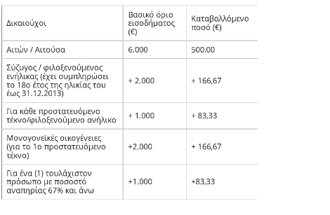 - Το συνολικό, πραγματικό ή τεκμαρτό, ατομικό ή οικογενειακό, εισόδημα των δικαιούχων δεν θα πρέπει να υπερβαίνει τα όρια που τίθενται στην κατωτέρω κλίμακα.