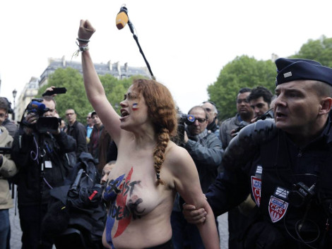 Η παράταξη της Μαρί Λεπέν διαδηλώνει παραδοσιακά αυτή την ημέρα στο Παρίσι για να τιμήσει την Ιωάννα της Λοραίνης, ενώ φέτος, ετοιμάζεται για μία μεγάλη εκλογική νίκη στις Ευρωεκλογές. Ακόμη κι έτσι, πάντως, οι γυμνόστηθες διαδηλώτριες της Femen βρέθηκαν εκεί για να αποδοκιμάσουν τον ρατσιστικό λόγο του κόμματος.