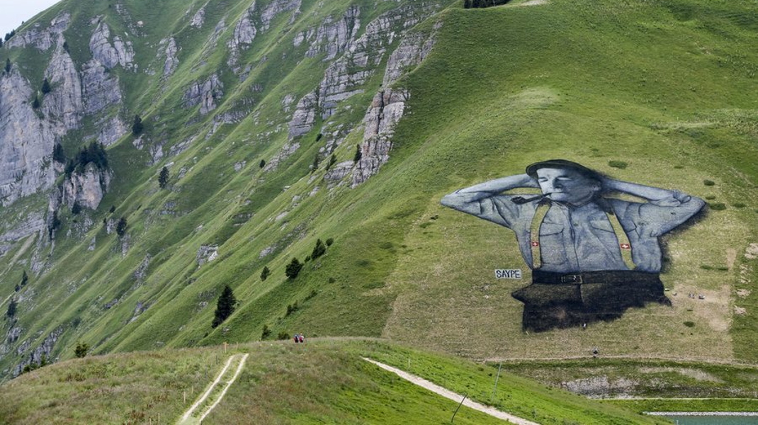 Ο Γάλλος καλλιτέχνης Saype δημιούργησε εικόνα Ελβετού βοσκού, σε έκταση 10.000 τετραγωνικών μέτρων